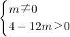 2-2x+3=0为一元二次方程,利用△=4-12m<0可求得m的取值范围;