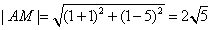 已知三角形ABC的顶点坐标为A(-1,5)、B(-2,-1)、C(4,3),M是BC边上的中点.