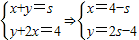 解答:解:由交点为A(2,0),B(4-s,2s-4),C(0,s),C'(0,4),