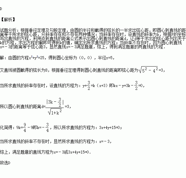 A.3x+4y+15=0 B.x=﹣3或y=﹣![]()