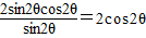 =2(2cos2θ-1)=4cos2θ-2=4×(2-2=-1.