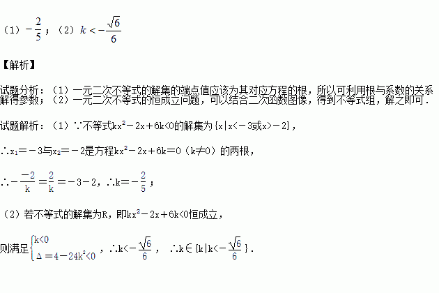 (1)若不等式的解集为{x|x<-3或x>-2},求k的值;