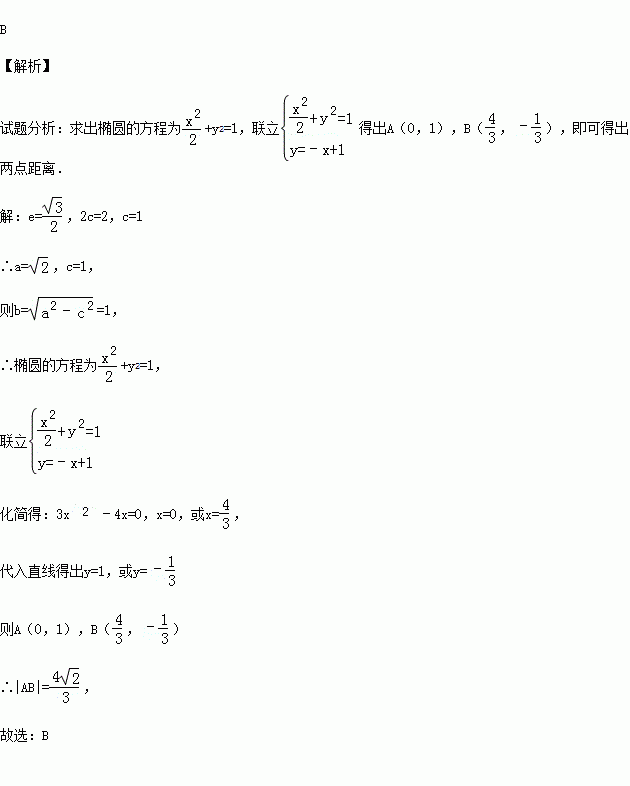 =1(a>b>0)相交于A、B两点,若椭圆的离心率为