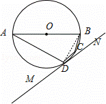 由弦切角定理可得:∠ABD=∠MDA=60°,∴∠BAD=30°.