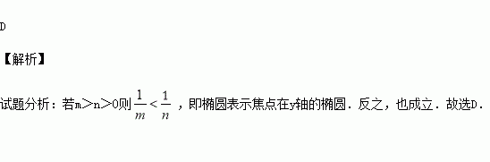 “m>n>0”是“方程表示焦点在y轴上的椭圆”的( )