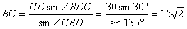 解:在△BCD中,∠BCD=15°,∠BDC=30°,CD=30,