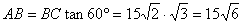 如图,测量河对岸的塔高AB时,可以选与塔底B在同一水平面内的两个测点C与D。测得∠BCD=15°,∠BDC=30°,CD=30米,并在点C测得塔顶A的仰角为60°,求塔AB的高。