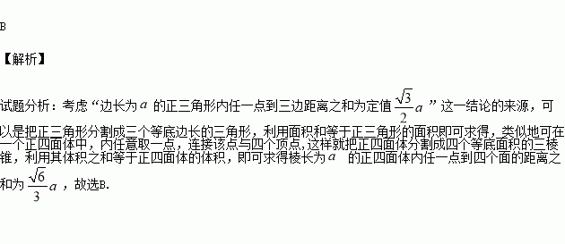 的正四面体内任一点到四个面的距离之和为( )