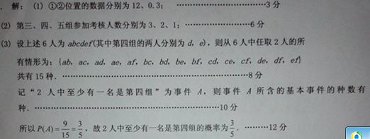 (2)为了选拔出更优秀的学生,高校决定在第三、四、五组中用分层抽样法抽取6名学生进行第二轮考核,分别求第三、四、五各组参加考核人数;