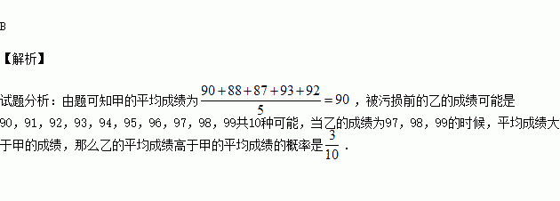 则乙的平均成绩高于甲的平均成绩的概率是( )