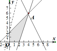 由$\left\{\begin{array}{l}{3x-y-6=0}\\{x-y+2=0}\end{array}\right.$得$\left\{\begin{array}{l}{x=4}\\{y=6}\end{array}\right.$,即A(4,6),