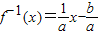【答案】分析:此题需要运用反函数的概念求出f-1(x),然后使所求出的函数表达式与f-1(x)=ax+b相等,求解即可!