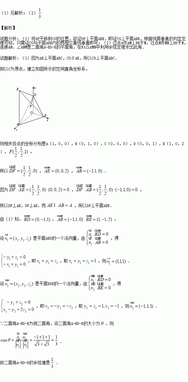 (1)证明DF⊥平面ABE;
