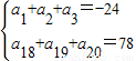 解答:解:由a1+a2+a3=-24,a18+a19+a20=78,
