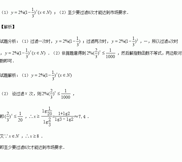 (2)按市场要求,杂质含量不能超过0.1%.问至少应过滤几次才能使产品达到市场要求?