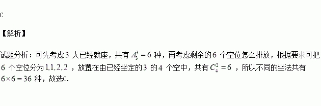 一排共有9个座位,现有3人就坐,若他们每两人都不能相邻,每人左右都有空座,而且至多有两个空座,则不同坐法共有( )