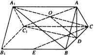 | 解:(1)连接A1C,与AC1交于O点,连接OD 因为O,D分别为A1C和B的中点, 所以OD∥A1B, 又OD 所以A1B∥平面AC1D。 |