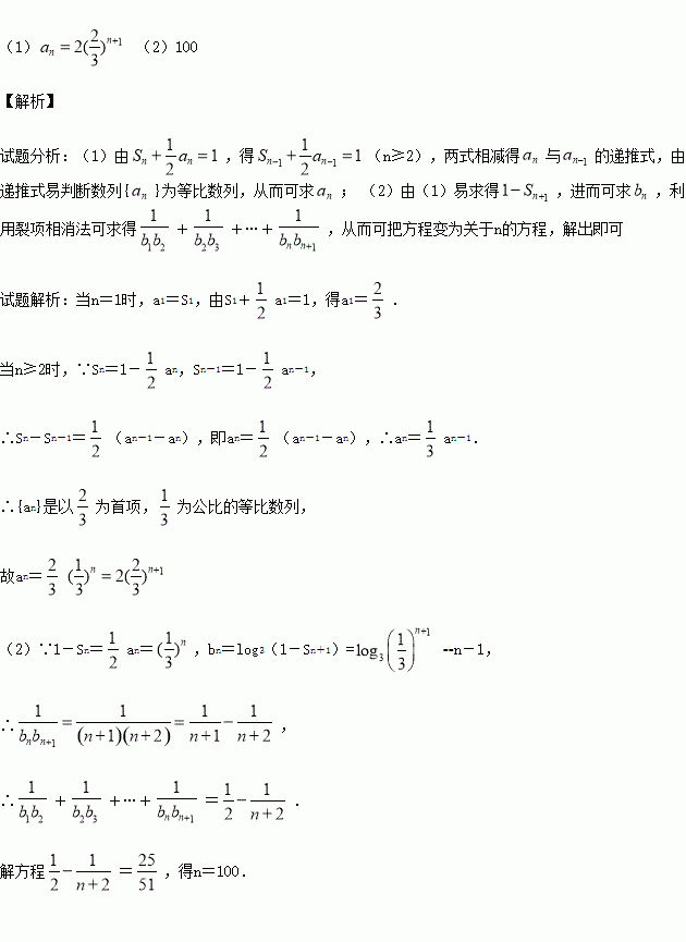 (2)设bn=log3(1-Sn+1),求适合方程