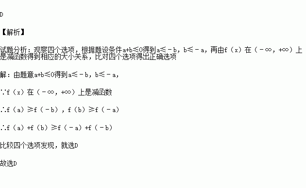 (2011春•兴国县校级期中)设f(x)在(﹣∞,+∞)上是减函数,且a+b≤0,则下列各式成立的是( )