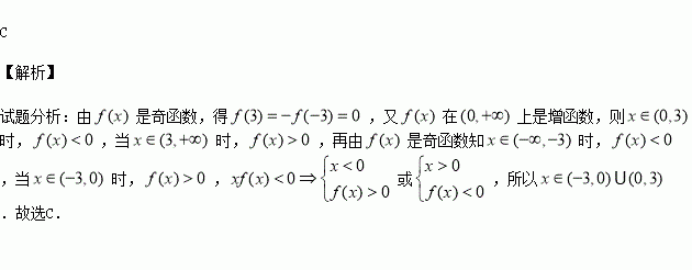 设f(x)是奇函数,且在(0,+∞)内是增加的,又f(-3)=0,则x·f(x)<0的解集是
