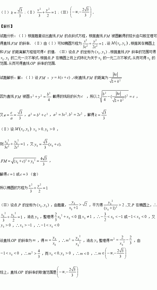 (Ⅲ)设椭圆上动点P在x轴上方,若直线FP的斜率大于