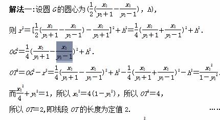 轴于点N,M,若直线OT与过点M,N的圆G相切,切点为T.证明:线段OT的长为定值,并求出该定值.