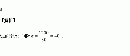 为了解1200名学生对学校教改试验的意见,打算从中抽取一个容量为30的样本,考虑采用系统抽样,则分段的间隔k为 ( )