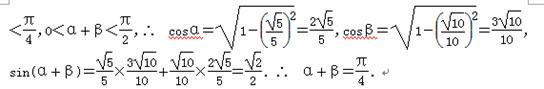 ,且α、β为锐角,则α+β的值为__________.