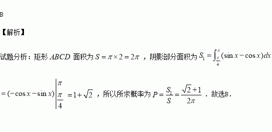 在矩形ABCD内交于点F,向矩形ABCD区域内随机投掷一点,则该点落在阴影区域内的概率是 ( )
