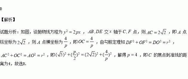 以抛物线C的顶点为圆心的圆交C于A、B两点,交C的准线于D、E两点.已知|AB|=