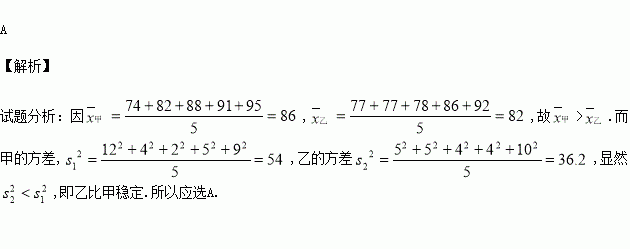 次数学考试中的成缋统计如下面的茎叶图所示,若