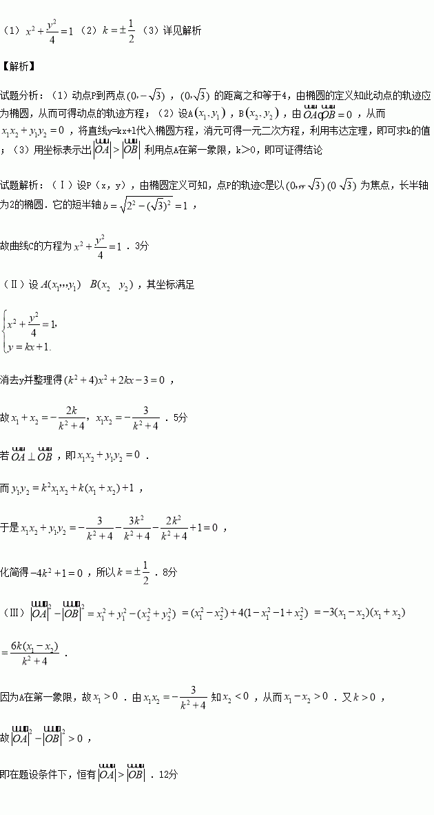 (3)若点A在第一象限,证明:当k>0时,恒有|
