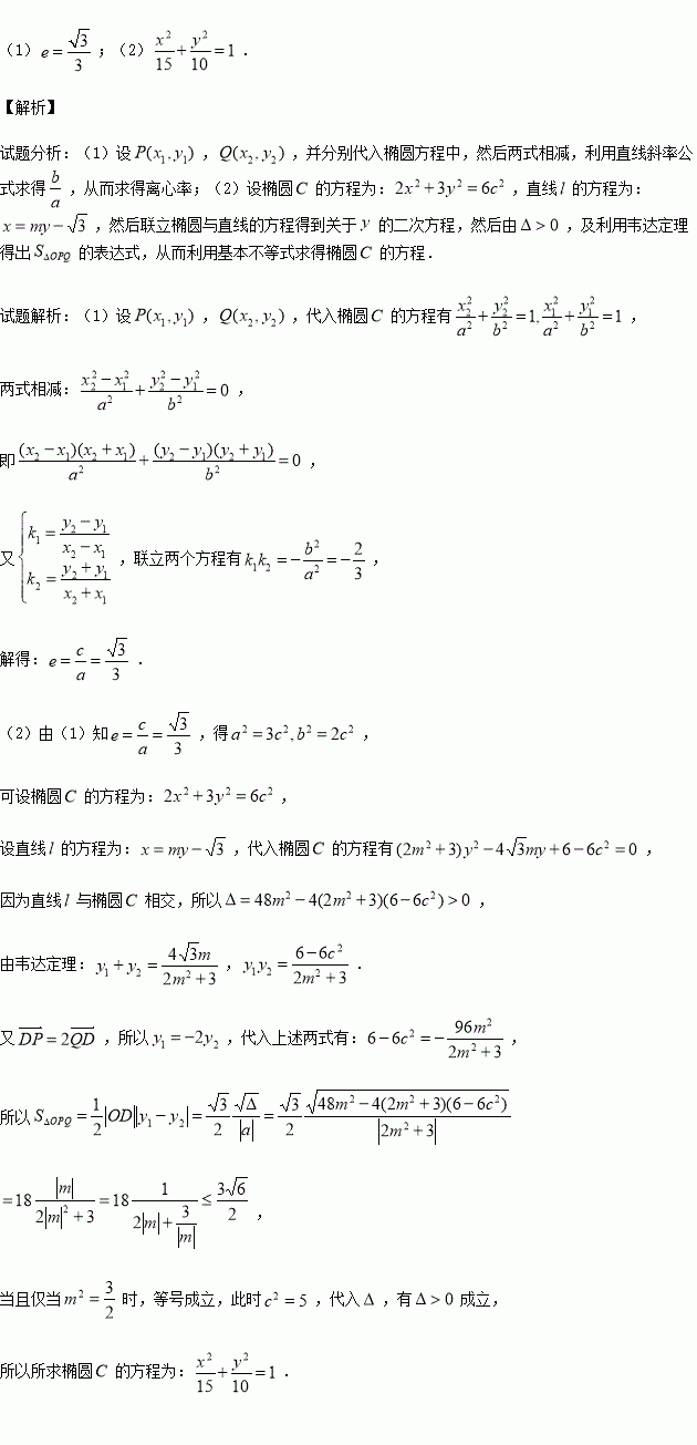 的面积最大时,求椭圆
