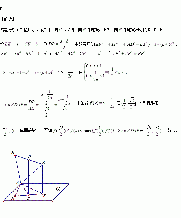 所成角的正弦值的范围是( )_科A.