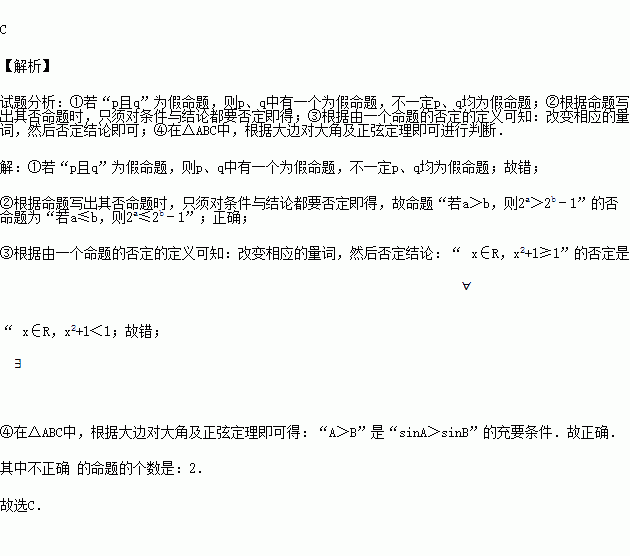 ①若“p且q”为假命题,则p、q均为假命题;