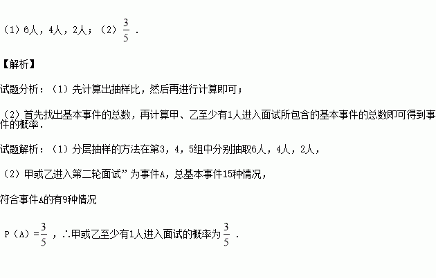 (1)现决定在笔试成绩较高的第3、4、5组中用分层抽样抽取12人进行面试,则第3、4、5组各抽取多少人?