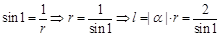 已知弧度数为2的圆心角所对的弦长也是2,则这个圆心角所对的弧长是( )