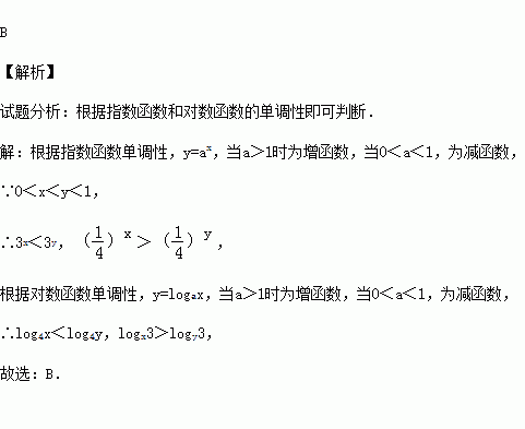 A.3y<3x B.log4x<log4y
