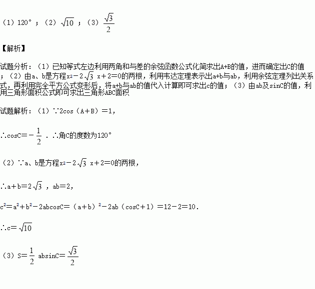 x+2=0的两根,且2cos(A+B)=1.