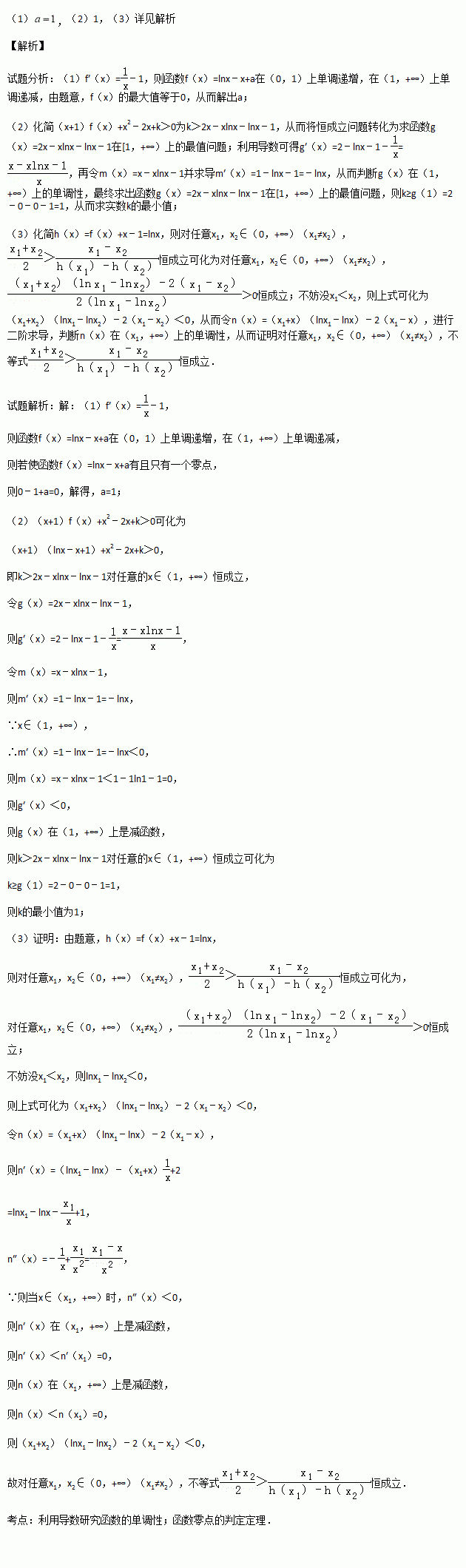 有且只有一个零点,其中a>0.