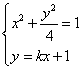 在直角坐标系xOy中,点P到两点(0,)、(0,)的距离之和为4,设点P的轨迹为C,直线y=kx+1与C交于A,B两点,