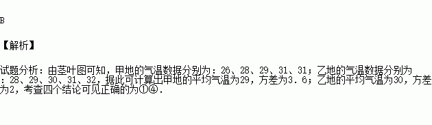 ④甲地该月14时的气温的标准差大于乙地该月14时的气温的标准差.