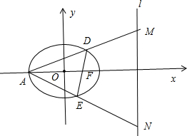 £¨2£©µ±DE¡ÍxÖáʱ£¬°Ñx=1´úÈëÍÖÔ²·½³Ì½âµÃD$£¨1£¬\frac{3}{2}£©$£¬E$£¨1£¬-\frac{3}{2}£©$£®¿ÉµÃÖ±ÏßADµÄ·½³Ì£ºy=$\frac{1}{2}£¨x+2£©$£¬½âµÃM£¬N£¬¿ÉµÃÒÔMNΪֱ¾¶µÄÔ²¹ýµãF£¨1£¬0£©£¬G£¨7£¬0£©£®