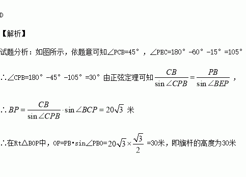 福州青运会开幕式上举行升旗仪式,在坡度15°的看台上,同一列上的第一排和最后一排测得旗杆顶部的仰角分别为60°和30°,第一排和最后一排的距离为