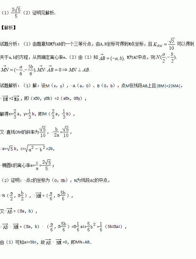=1(a>b>0),点O为坐标原点,点A的坐标为(a,0),点B的坐标为(0,b),点M在线段AB上,满足|BM|=2|MA|,直线OM的斜率为