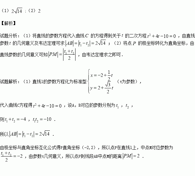 (2)在以O为极点,x轴的正半轴为极轴建立极坐标系,设点P的极坐标为