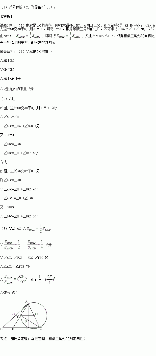 (1)求证:D是弧AE的中点;