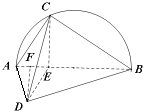 其中,在△ACD中,AC2=20=AD2+CD2=2+18,∴AD⊥CD,故△ADE是等腰直角三角形,AD=DE=$\sqrt{2}$,∴棱锥底面ABC上的高为DF=1,如图![]()