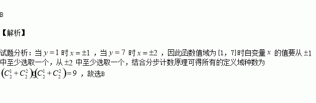 若一系列函数的解析式相同,值域相同,但定义域不同,则称这些函数为“孪生函数”,那么函数解析式为y=2x2-1,值域为{1,7}的“孪生函数”共有( )