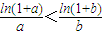 由(I)知x-(1+x)ln(1+x)在(0,+∞)单调递减,∴x-(1+x)ln(1+x)<0即g(x)是减函数,而a>b